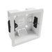 Wall Back boxes are used behind face plates, they allow the face plates to be screwed and secured flush to a wall. This back box should be used with a plaster boarded stud wall, the clips at the side of the back box should be pushed out and when the face plate is screwed on, the back box as well as the face plate are held in position. Simply Cut hole in plasterboard with a pad saw, Place dry lining box in position and push out retaining clips.