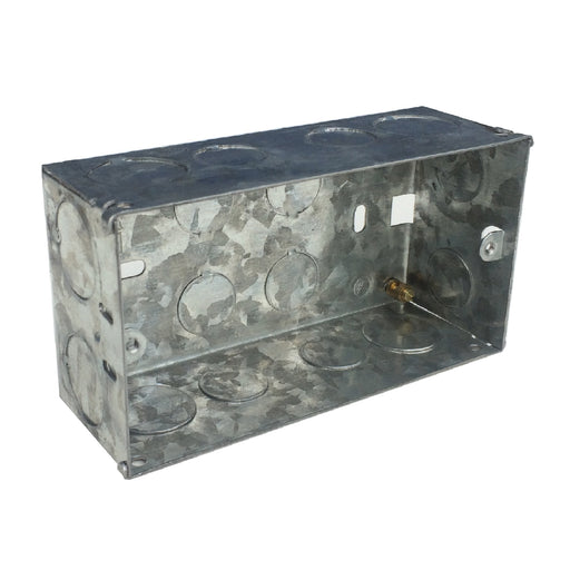 Red / GreyProduct Description Galvanised Metal Back Box 47mm Galvanised metal double pattress. Depth: 47mm. Knock out cable entries. Earth fixing ...