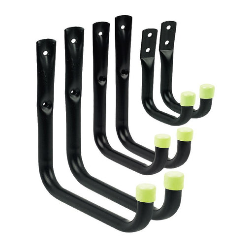 HomesmartProduct Description Assorted Heavy Duty Storage Hooks Pack of 6 Heavy duty hardened steel construction. Rubber hook end caps for protec...