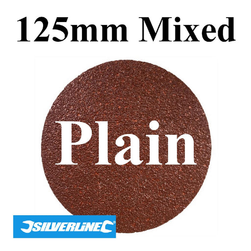 10 x Assorted Grit Hook and Loop 125mm Plain Sanding Disc Sheets, Orbital Sander