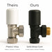 The straight valve configuration allows the pipe to connect directly into the radiator or towel rail without a bend, creating a neat and aligned installation. This makes them particularly well suited to wall-chased pipework commonly found in renovations, retrofits, and contemporary bathroom installations.