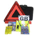 1 x Warning triangle European standard.1 x Hi visibility vest universal fit.1 x Light deflectors.2 x Alcoproof breathalyser – twin pack NF French legal.1 x Standard bulb car kit ( Bulbs kits may vary )1 x GB magnetic sign.1 x 9 Led torch with batteries.1 x Kit bag.